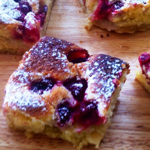 Afternoon Tea Time Treat. Vanilla Buttermilk Cake with Apples and Raspberries