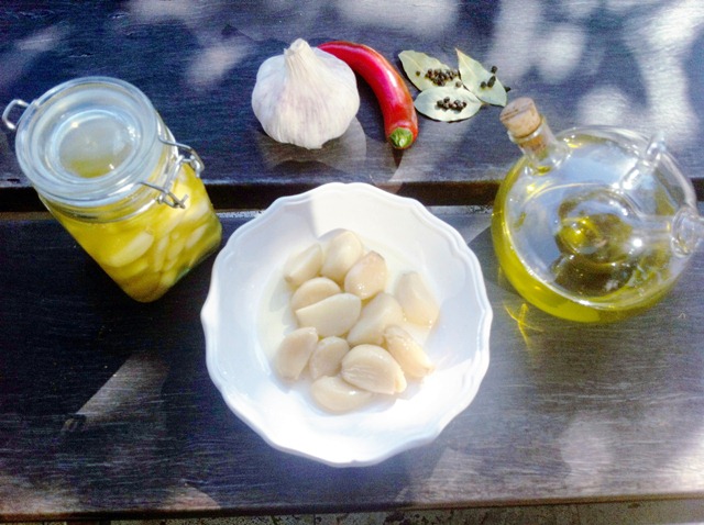 Confit Garlic with Herbs, Chilli and Peppercorns