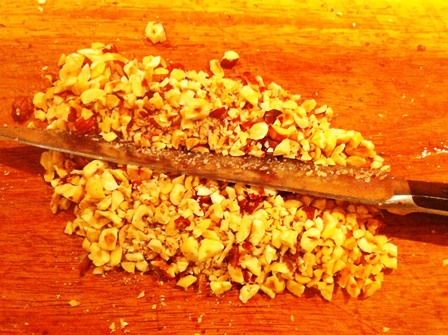 Rich and Decadent. Whiskey, Chocolate and Hazelnut Cake with Rhubarb Compote and Creme Fraiche