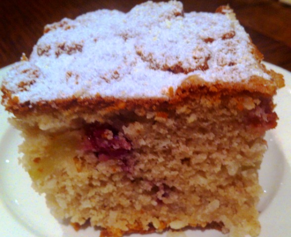 Hermann Cake with Apple, Raspberry and Shredded Coconut