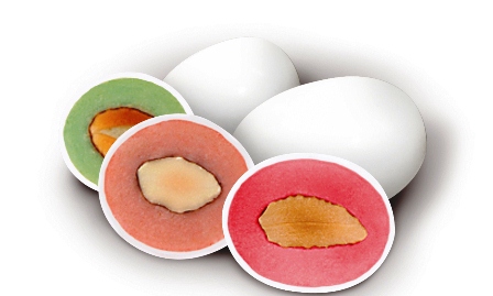 Dolci sapori. From the Italian. Translates as sweet flavours. How very apt. These chocolate flavoured almonds have a crisp thin sugar shell and come in an amazing range of flavours. I sampled twelve of them with relish. Truth be told I’m working through the rest of my hoard as I type this post. Baba with Cream, Caramel and Fleur de Sel, Delicious Lemon, Coconut, Croissant, Lemon, Les Noisettes , Pistachio, Sfogliatella Napoletana, Strawberry, Tiramisu and Fruits of the Forest Yoghurt. They’re all so unbelievably delicious but if you twist my arm I may confess my two stand out favourites would have to be the Strawberry and Caramel and Fleur de Sel.