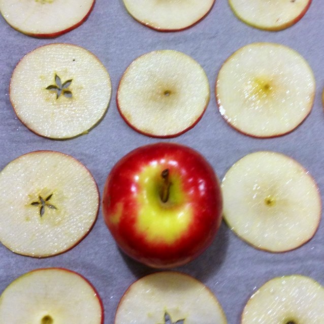 Toffee Apples For Grown Ups. Sweet, Crisp and Crunchy. Oven Baked Apple Chips With A Toffee Drizzle.