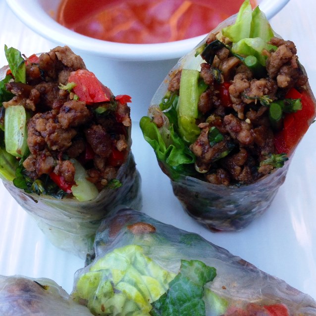 ← Eat, Fast and Live Longer. A 5-2 Fast Diet Recipe Idea Under 300 Calories. Pork, Mushroom and Broccolini Rice Paper Rolls With a Sweet Chilli Lime Dipping Sauce.