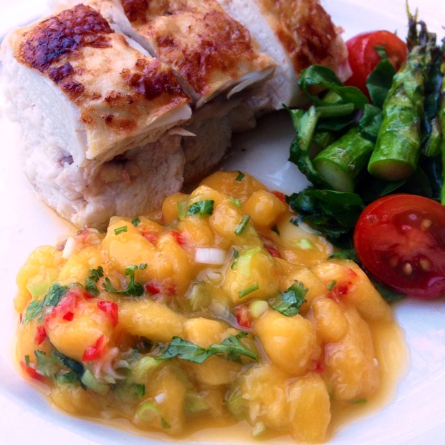 Luscious And Fragrant. The First Mangoes Of The Season. Fresh Mango Salsa With Lime, Chilli and Spring Onion.