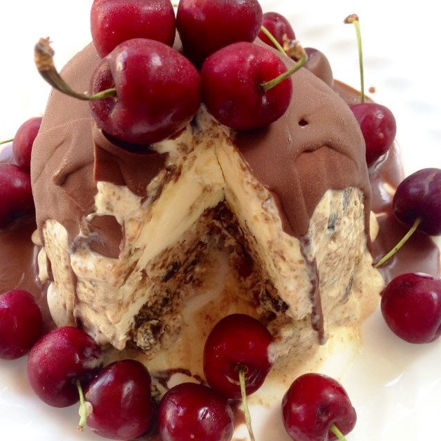 ← Fuss Free For A Very Cool Yule. Christmas Pudding Ice Cream With Chocolate Ice Magic Topping and Cherries.