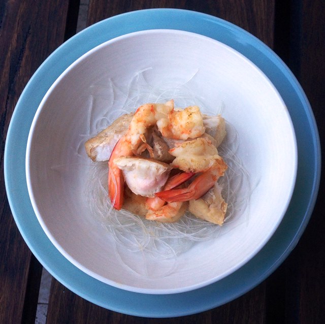 Spicy Thai Coconut Soup With Snapper and Prawns