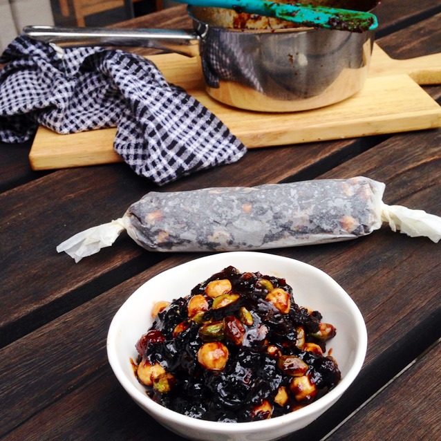 Prune, Pistachio and Hazelnut Log Paste