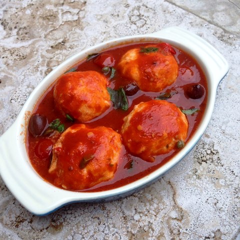 Comfort Food. Inspired By Jamie Oliver. Baked Ricotta Gnudi With Puttanesca Sauce