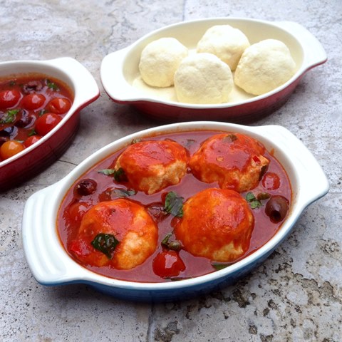 Comfort Food. Inspired By Jamie Oliver. Baked Ricotta Gnudi With Puttanesca Sauce