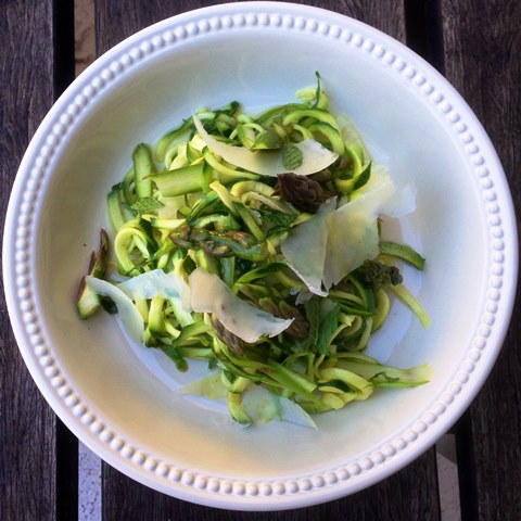 Raw Summer Asparagus and Zucchini Salad with Parmesan, Lemon And Mint