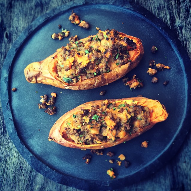 Baked Sweet Potatoes Stuffed With Spiced Lamb