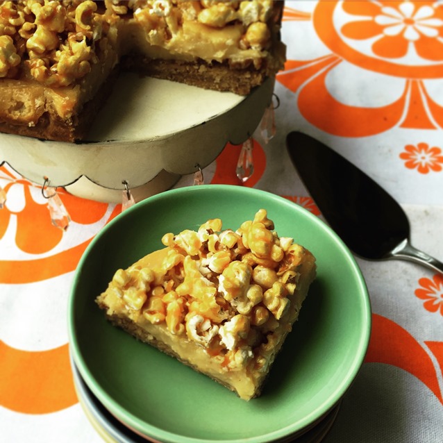 The Pleasures Of The Feast. Three Layer Salted Caramel Slice With Popcorn Brittle