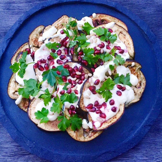 ← Eat, Fast and Live Longer. A 5-2 Fast Diet Recipe Idea Under 200 Calories. Roasted Eggplant Salad With Saffron Yoghurt And Pomegranate.