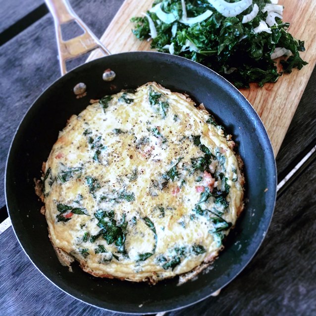 ← Eat, Fast and Live Longer. A 5-2 Fast Diet Recipe Idea Under 300 Calories. Kale and Bacon Frittata Dressed With a Fresh Kale and Fennel Salad.